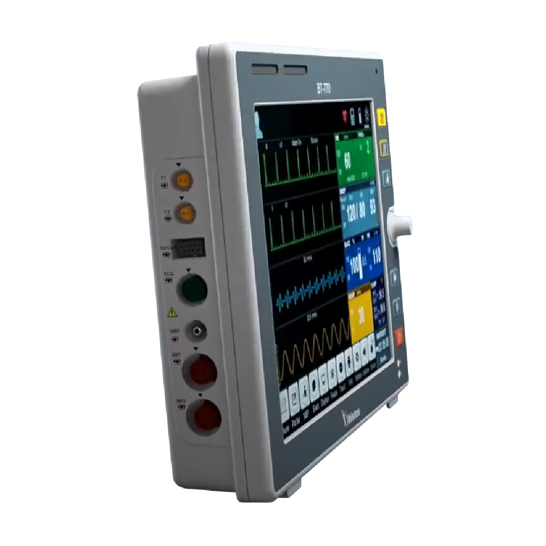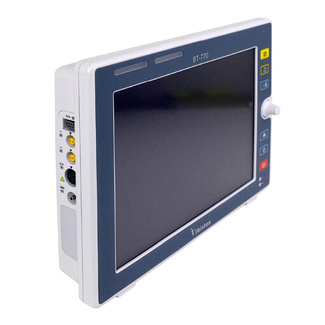 El BISTOS BT-770 es un monitor multiparamétrico diseñado para adultos, niños y neonatos, que permite controlar ECG, saturación de oxígeno (SpO₂), presión arterial, temperatura corporal y frecuencia respiratoria.